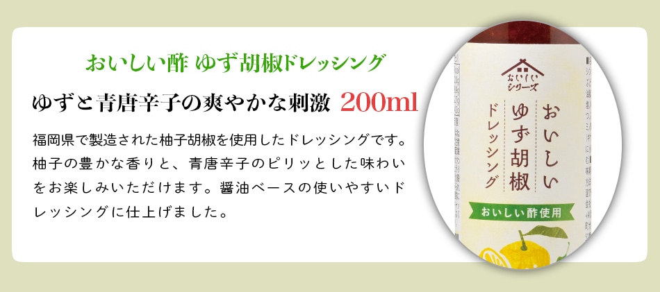 | 原材料名 | 糖類(果糖ぶどう糖液糖、ぶどう糖)、食用植物油脂(国内製造)、しょうゆ、醸造酢、食塩、ゆずこしょう、はちみつ/調味料(アミノ酸等)、香料、増粘剤(キサンタンガム)、水 |